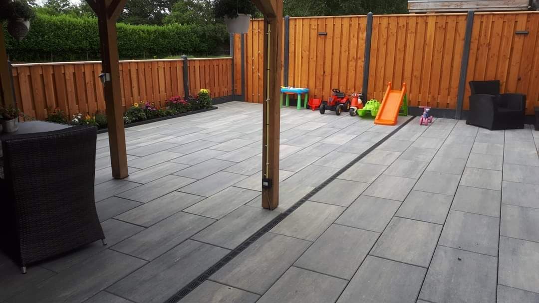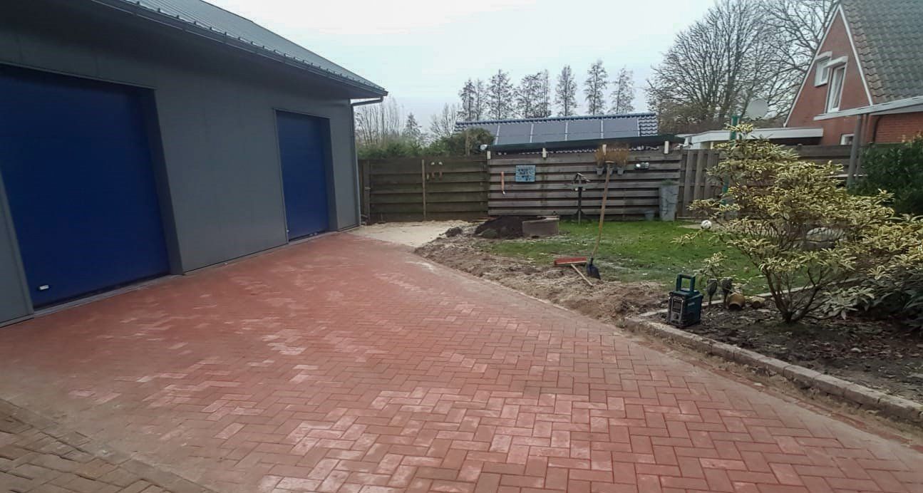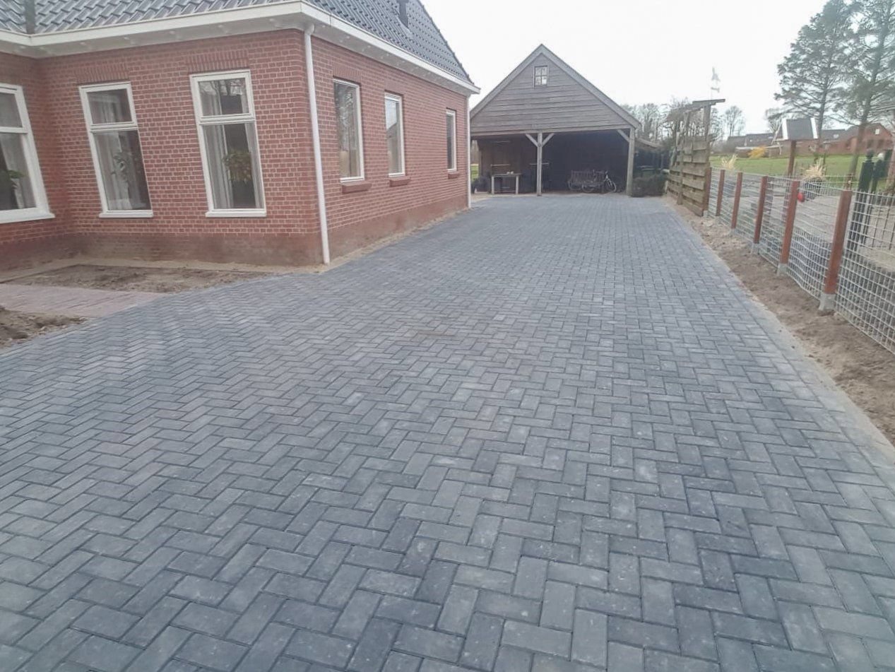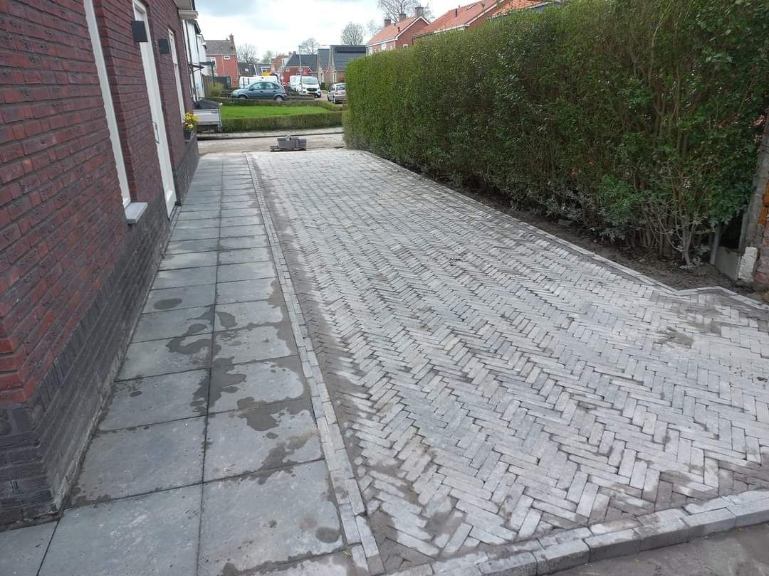 Uiteraard goed aangetrild met onze eigen zware trilplaat en tenslotte tot in de puntjes afgewerkt. Voor een moderne uitstraling kunnen we ook verlichting verwerken in uw bestrating.