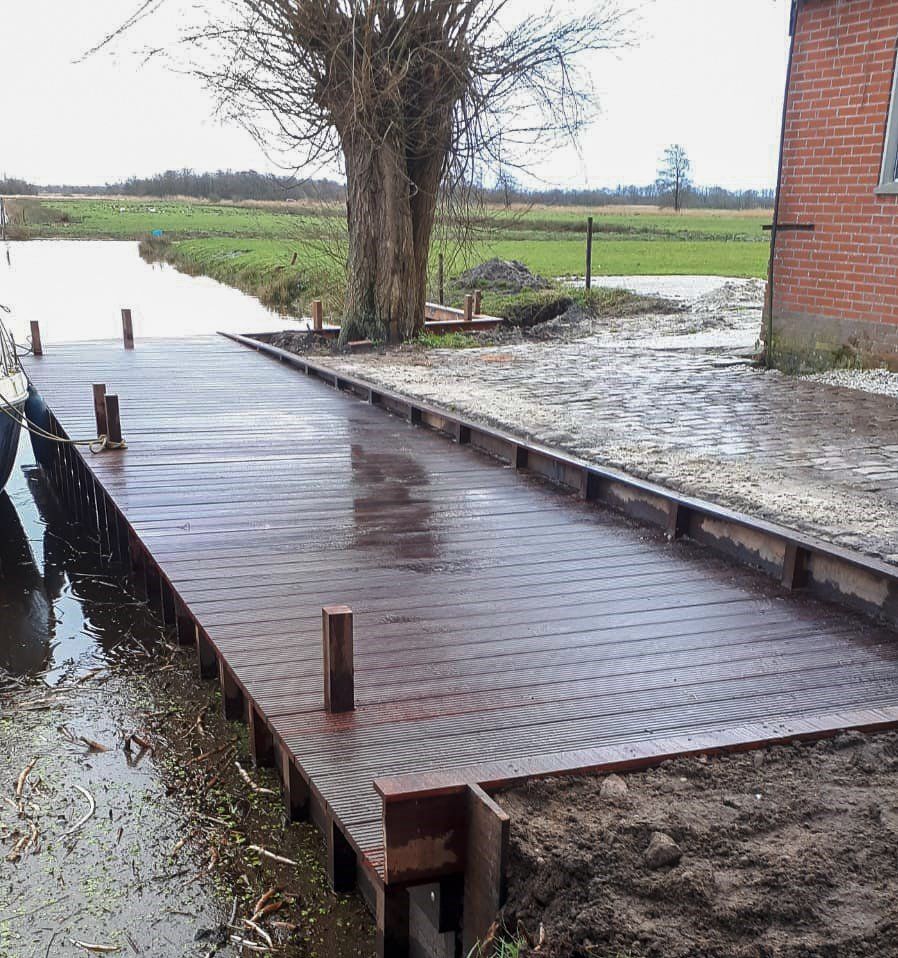 In het waterrijke Westerkwartier hebben we ruime ervaring met walbeschoeiiingen en aanlegsteigers. Wonen aan het water is een genot, maar walonderhoud kan lastig zijn. We pakken dit graag grondig voor u aan met een hardhouten beschoeiing die gegarandeerd voor tientallen jaren geen onderhoud behoeft.